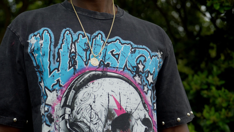 The Skull Wave Tee blends street chaos with Hermetic insight. A skeletal head vibing in headphones, surrounded by stars and glitch-punk neon, channels the Law of Vibration—reminding you that everything is frequency. This piece is tuned for the ones who ride waves others can’t see. Crafted with raw hems, underground spirit, and a message coded in ink: you are the static before the signal. Wear the noise.